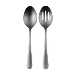Give your serveware collection a refresh with this Food Network Flat Iron serving spoon and slotted spoon set.