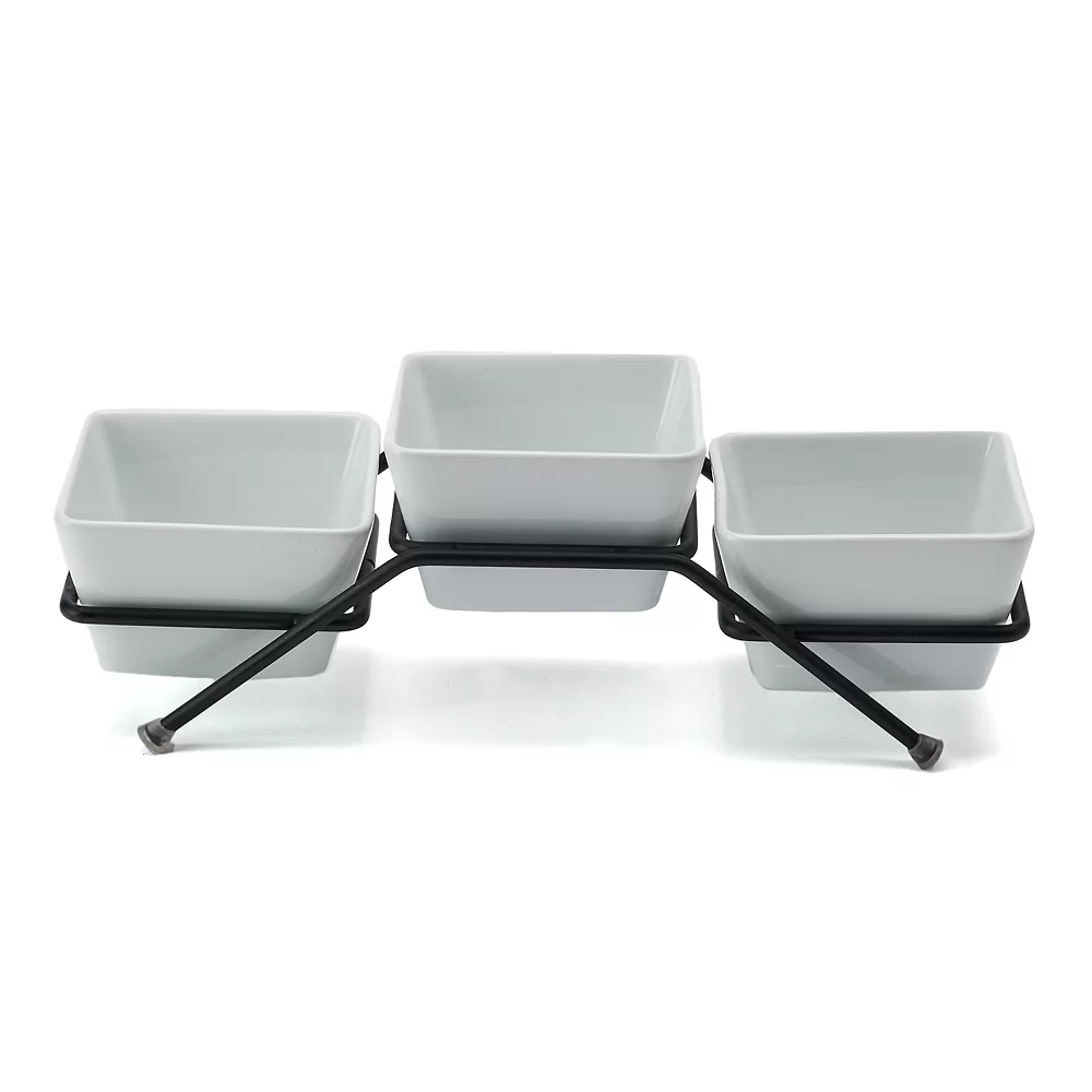 - Three bowls: 2.5″H x 4″W x 4″D (each)