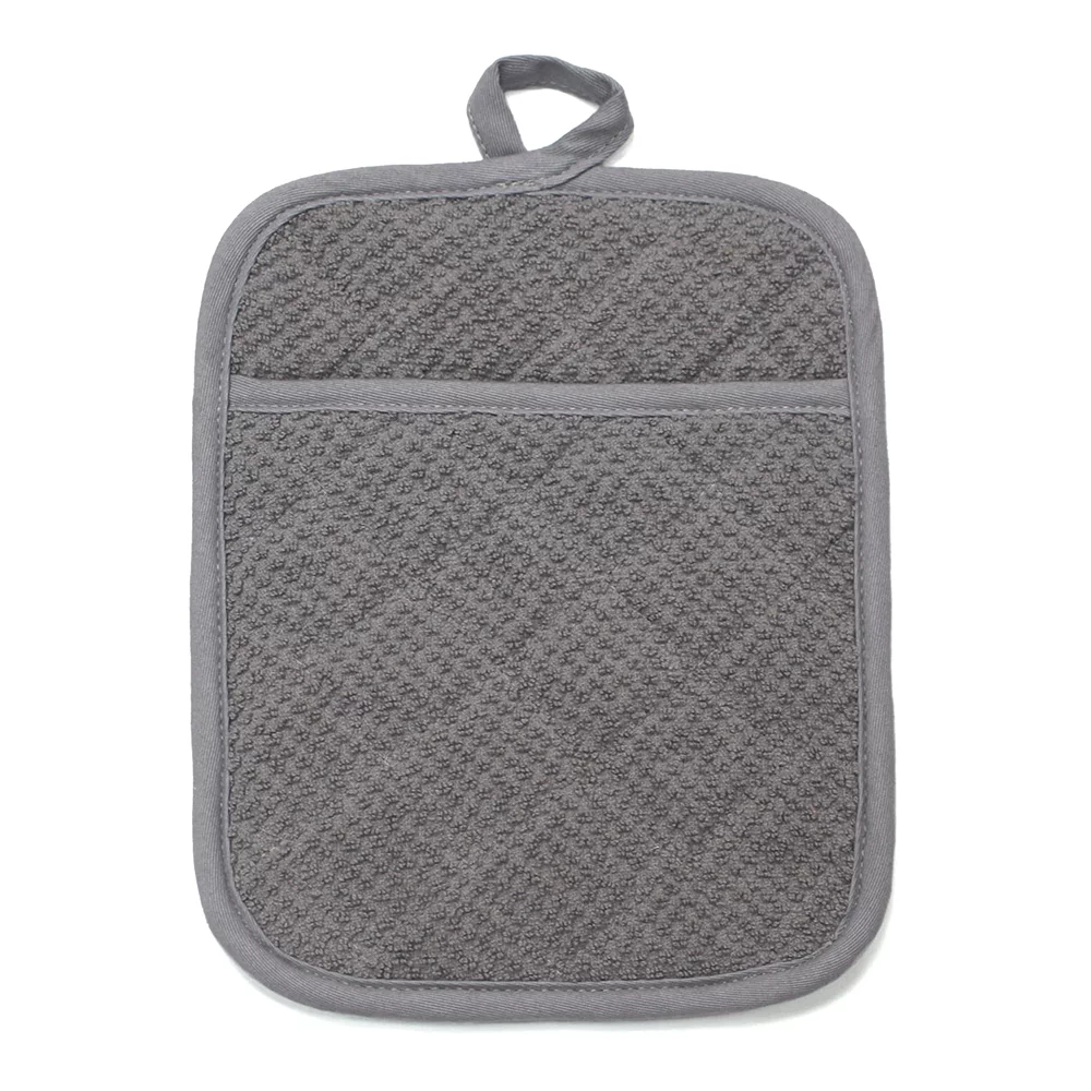 Get a safe grip on hot dishes with this Food Network terry pot holder.