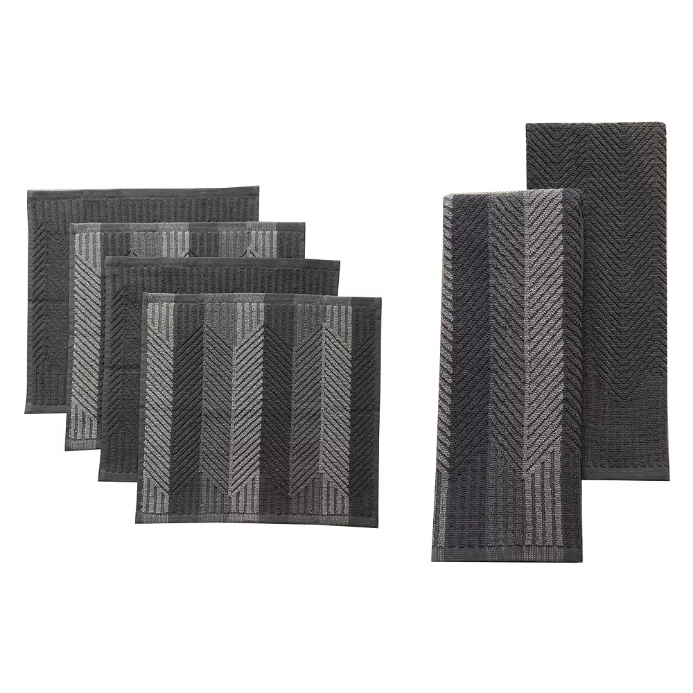 Keep your kitchen tidy with this Food Network striped Kitchen towel and dishcloth multi-pack.